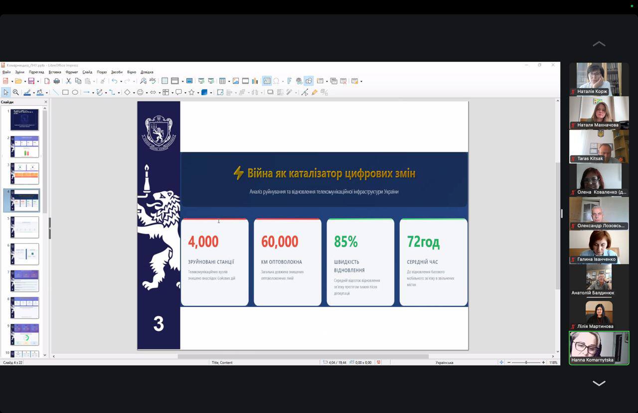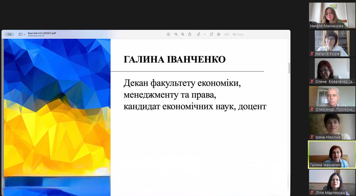 Модераторка заходу Наталя Махначова, завідувачка кафедри менеджменту та публічного управління, кандидат економічних наук, доцент, наголосила на актуальності тематики круглого столу та важливості участі стейкголдерів та наукової спільноти у постійній комунікації та оновлені освітніх компонентів, практичній підготовці здобувачів.