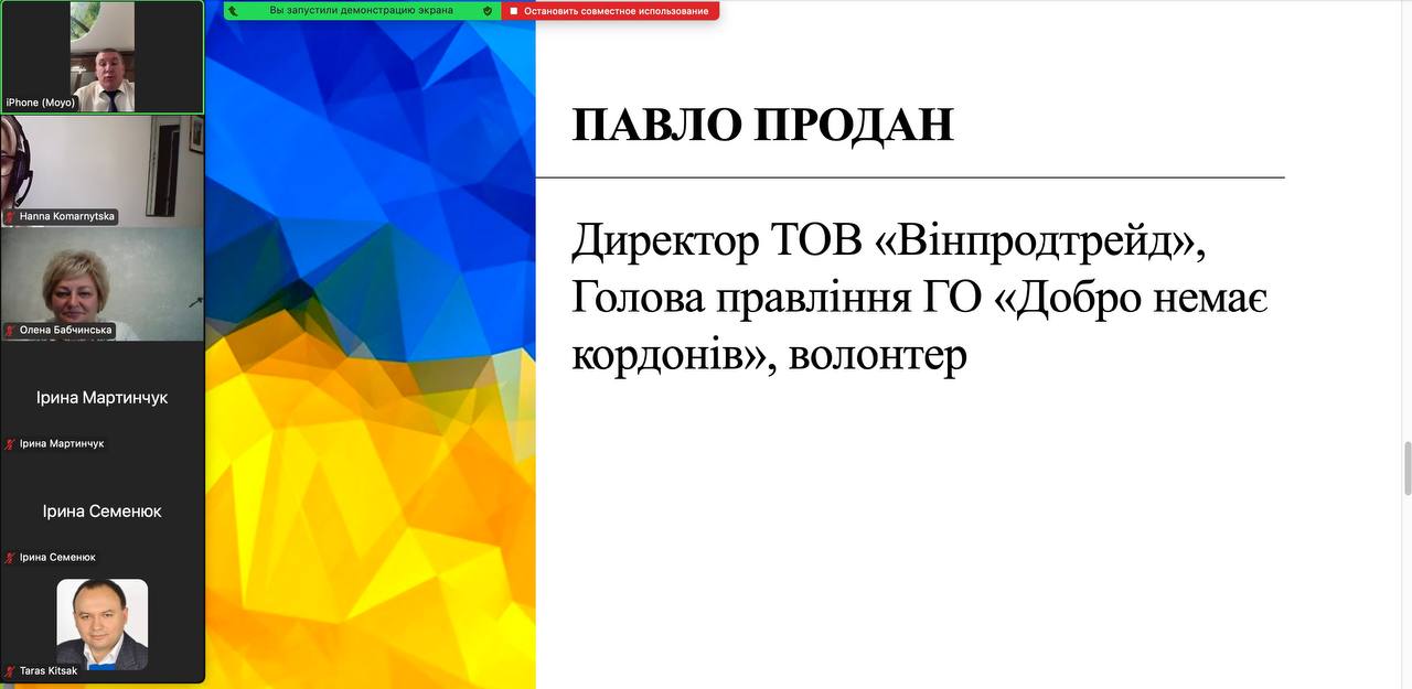 - Павло Продан, директор ТОВ «Вінпродтрейд», голова правління ГО «Добро не має кордонів», волонтер, доповідь «Трансформація бізнесу в умовах війни через призму волонтерства»