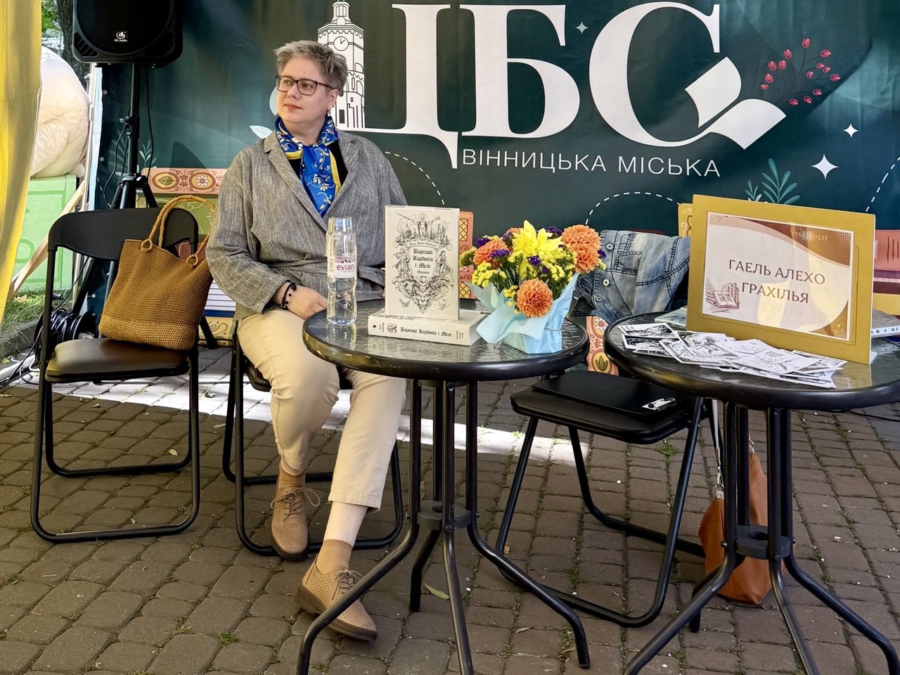 У рамках фестивалю "VinBookFest", студенти-філологи груп Ф-11д, Ф-12д та Ф-11 дсп та доценти кафедри іноземної філології та перекладу Коровій Д. та Шостак У. відвідали авторську зустріч з письменницею Гаель Флехо Грахілья та прослухали презентацію книги "Вартові Кордонів і Меж. Посвята Меча".