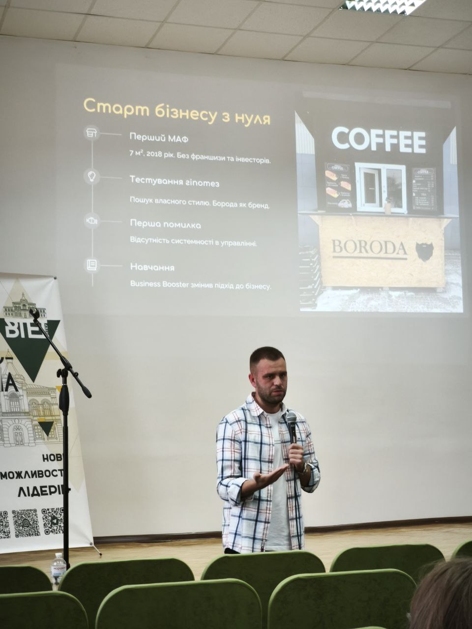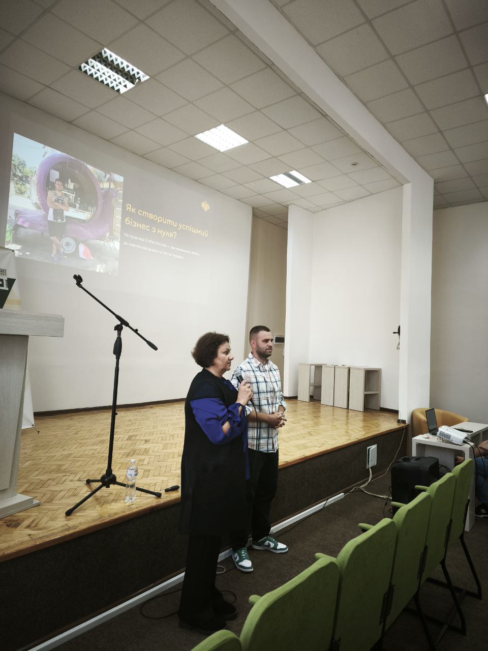 У ході зустрічі він поділився власним досвідом створення та розвитку бізнесу «з нуля» – від ідеї першої кав’ярні до розбудови успішної мережі. Спікер розповів про ключові виклики, які виникали на шляху, та рішення, що допомогли йому досягти результату.