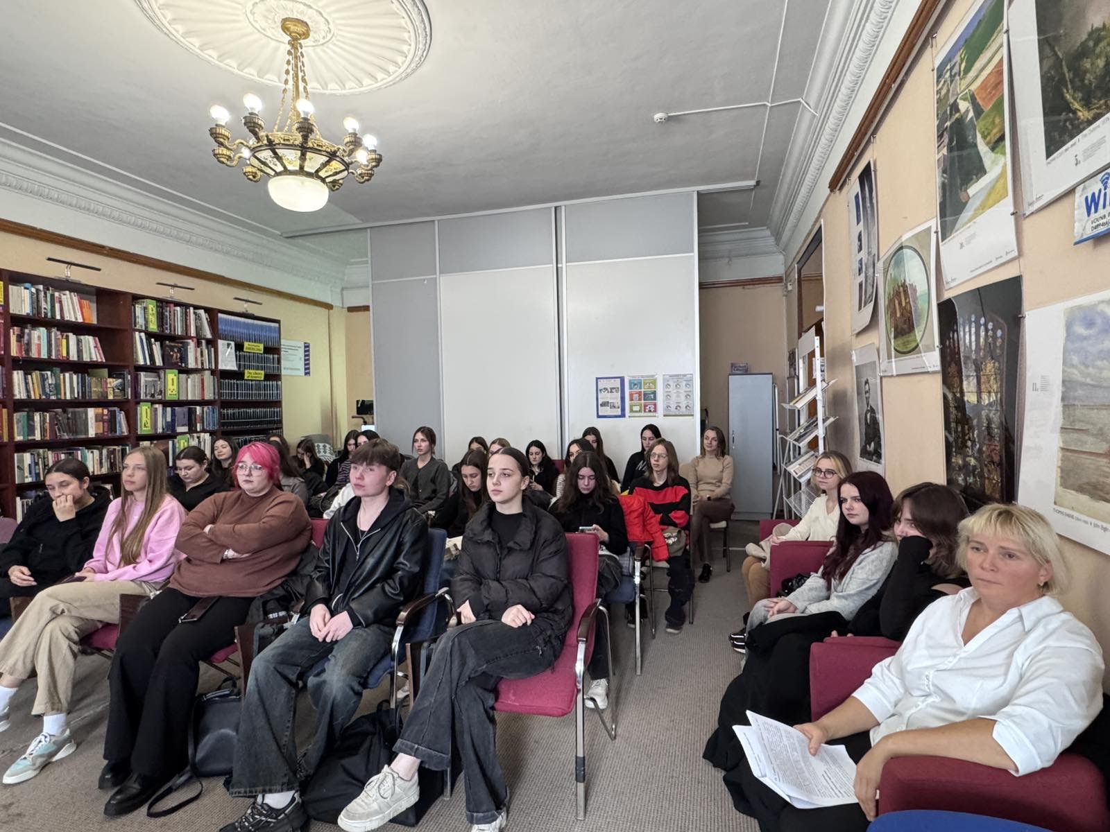 29 вересня 2025 р., напередодні Міжнародного дня перекладача, здобувачі освіти спеціальності «Філологія» та старший викладач кафедри іноземної філології та перекладу Вероніка Яблочнікова відвідали майстер-клас «Мистецтво перекладу: як слова набувають нових значень». Захід організували працівники відділу документів іноземними мовами Вінницької обласної універсальної наукової бібліотеки імені Валентина Отамановського на чолі із завідувачкою відділу Оленою Марчук.