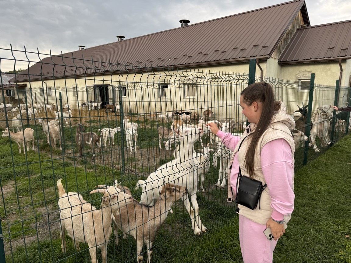 Прибувши на підприємство, науково-педагогічні працівники та здобувачі вищої освіти відвідали козину ферму, що нараховує понад 1 700 кіз альпійської та інших порід. У супроводі працівників підприємства учасники заходу оглянули приміщення, в яких проживають кози, в яких вони харчуються та проходять процес доїння. Детально вдалося оглянути спеціальне технологічне обладнання, яке при цьому використовується.