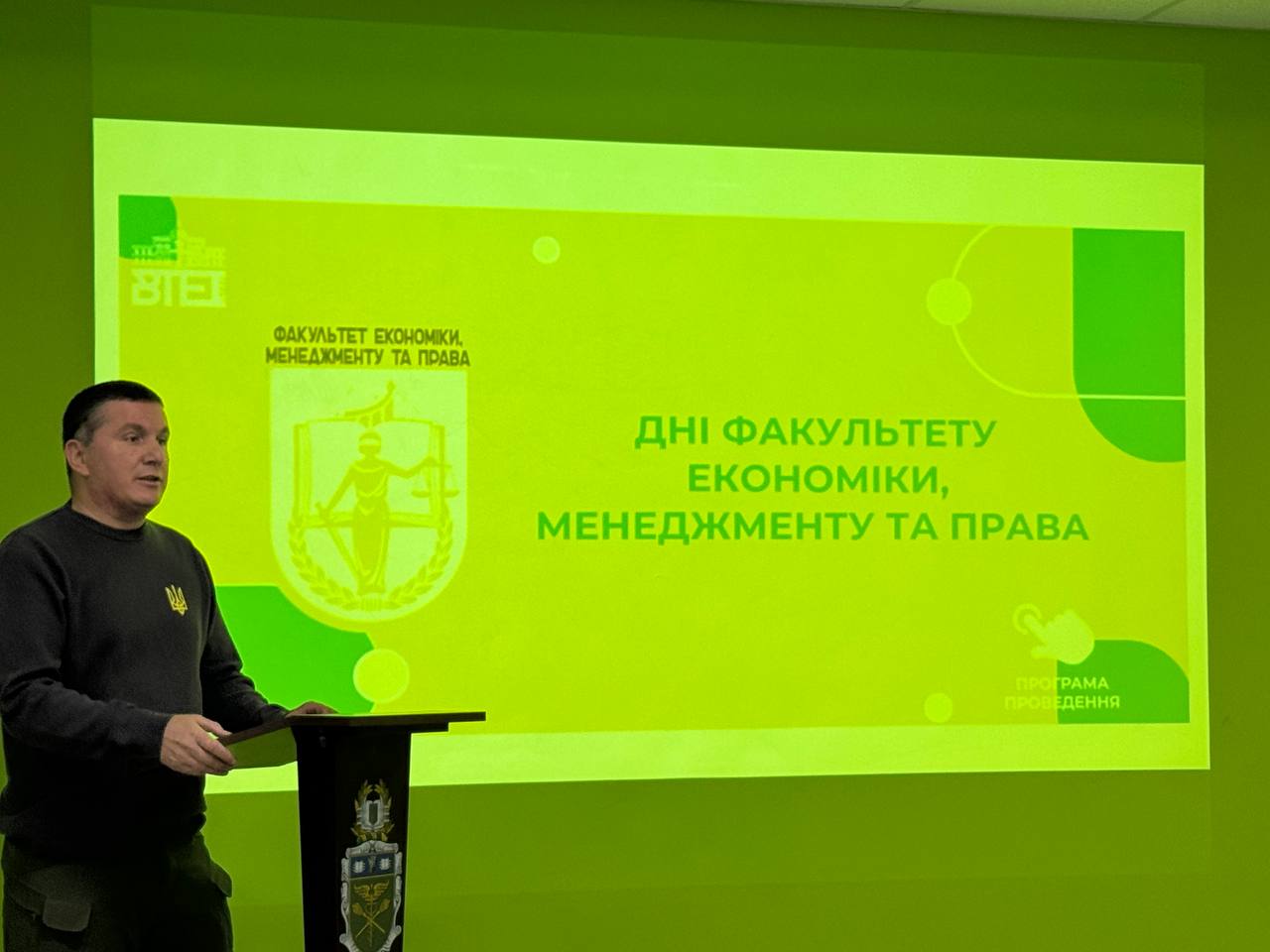 9 жовтня 2025 року, в рамках проведення Тижня факультету економіки, менеджменту та права, Павло Продан, волонтер, директор ТОВ «ВІНПРОДПЛЮС» провів лекцію-бесіду «Бізнес в умовах війни». До лекції долучилися студенти спеціальності «Менеджмент» бакалаврського та магістерського рівнів, науково-педагогічні працівники кафедри менеджменту та публічного управління, а також усі бажаючі.