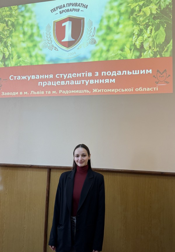 21 жовтня 2025 року інститут відвідала Олена Шміголь, менеджер з найму персоналу ТОВ «Перша Приватна Броварня», зустрілася зі здобувачами вищої освіти, які навчаються за спеціальністю G13 Харчові технології / 181 «Харчові технології» ОС «бакалавр», «магістр», та презентувала їм інформацію про підприємство.