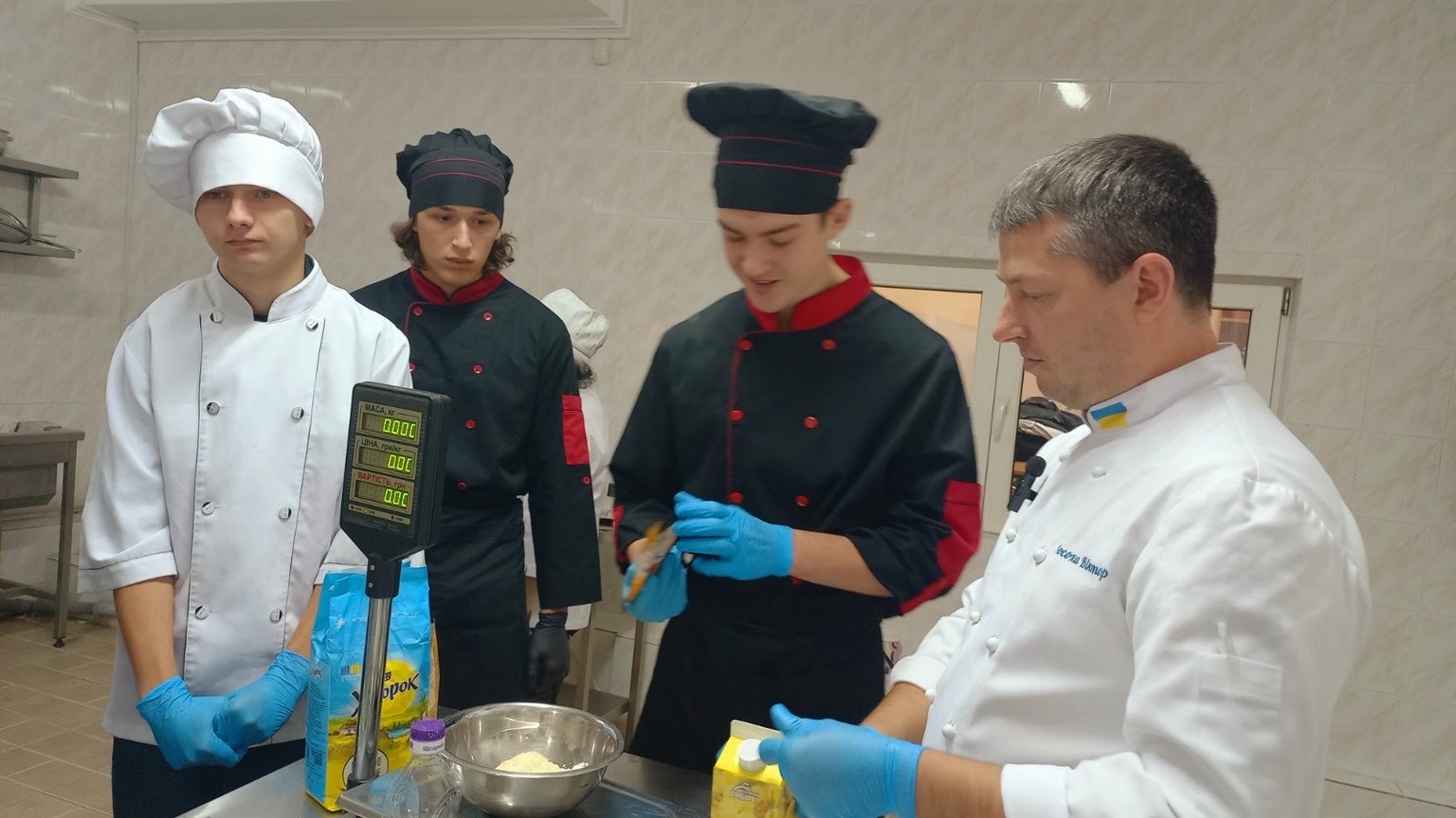 Шеф-кухар поділився професійним секретом приготування тіста для канолі – від замішування до правильного розкачування та формування. Здобувачі дізналися, як досягти потрібної еластичності тіста, а також зберегти структуру виробу після випікання.