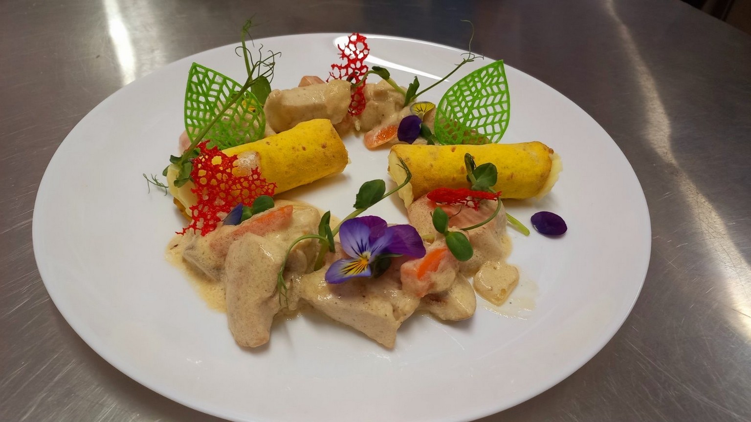 Під час заходу здобувачі вищої освіти познайомилися з технологією приготування канолі з куркою, картопляним пюре, грибами, овочами під ніжним сметанним соусом.
