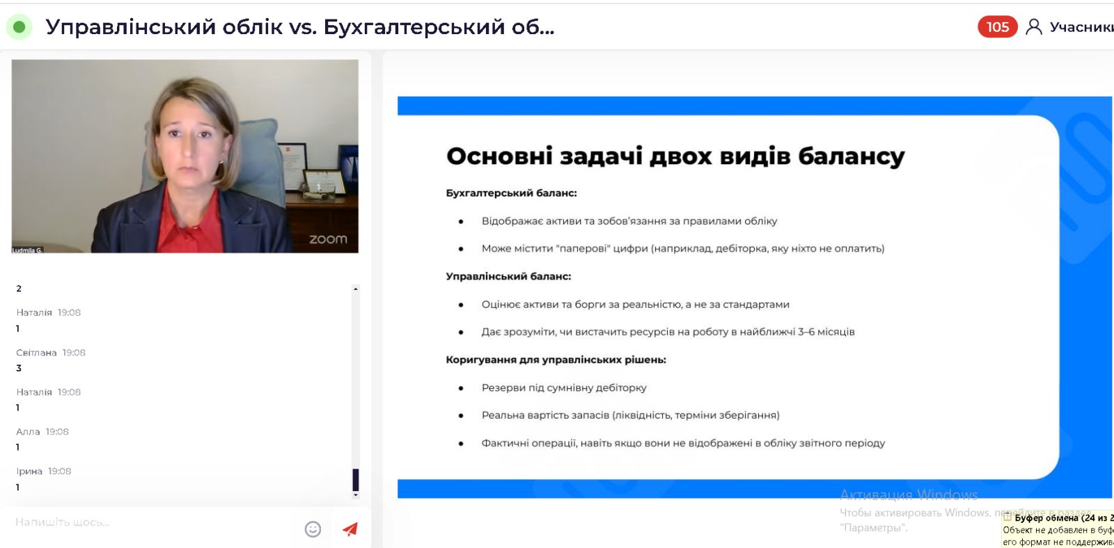 28 жовтня 2025 року науково-педагогічні працівники кафедри обліку та оподаткування ВТЕІ ДТЕУ долучилися до вебінару «Управлінський облік vs. Бухгалтерський облік: як стати майстром з впровадження першого без шкоди для другого», який провела тьютор-практик Людмила Гаврилюк.