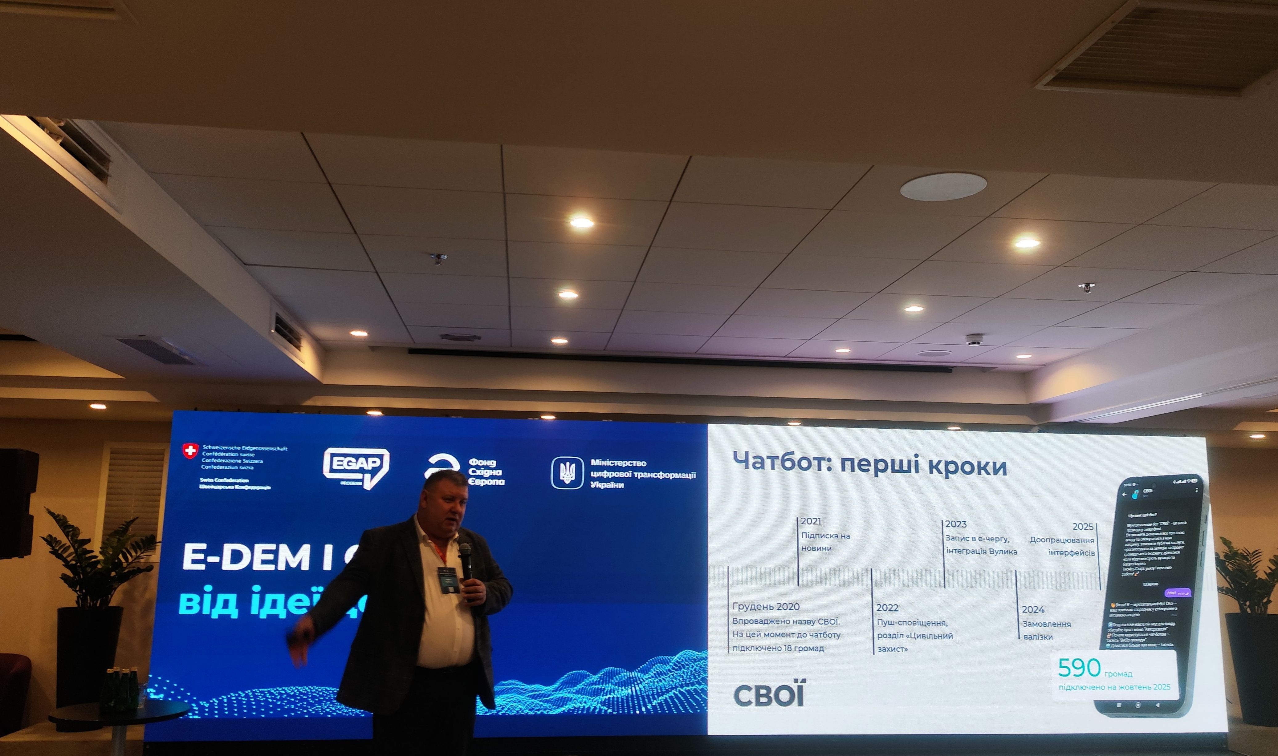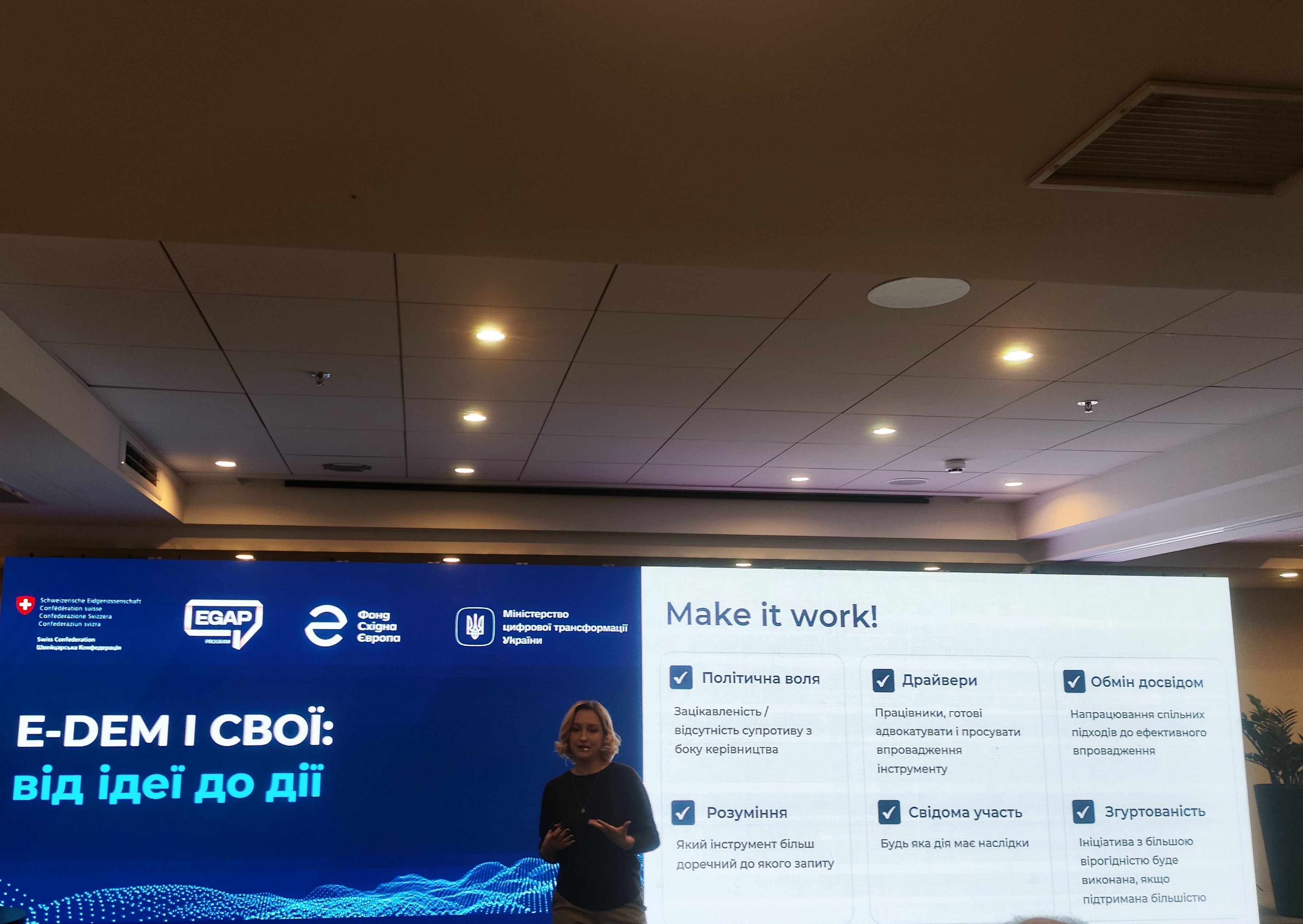 Захід став майданчиком для обговорення викликів цифрової трансформації, шляхів підвищення цифрової спроможності громад, обміну практичними напрацюваннями у сфері впровадження сервісів е-урядування та розбудови відкритого врядування в Україні.