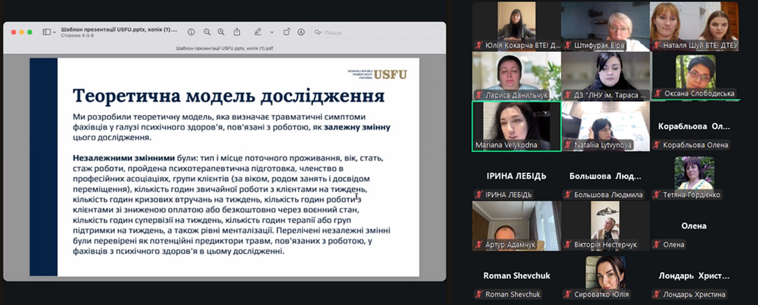 Під час круглого столу обговорювалися питання безпечного формування здоров'язбережувального освітнього простору, психологічного благополуччя фахівців соціономічних професій, розвитку душевної стійкості та саморегуляції.
