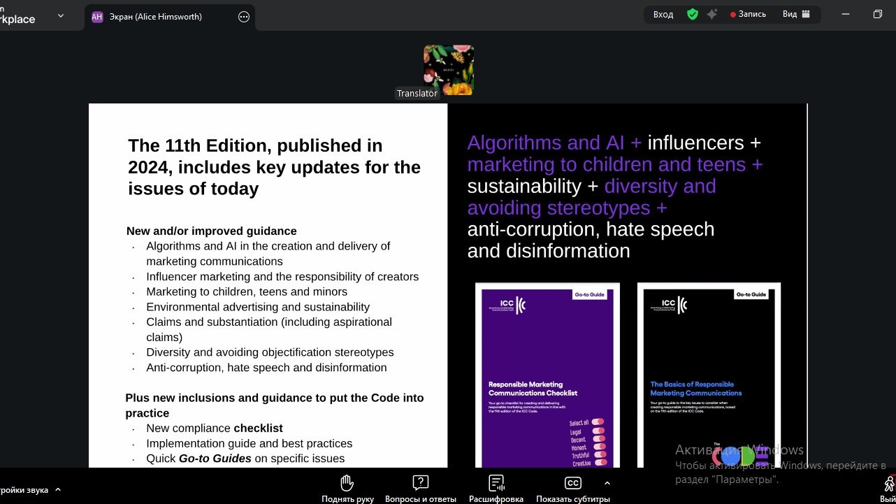 У межах вебінару учасники дізналися про призначення та принципи Кодексу ICC, ключові зміни, запроваджені в останній редакції, а також про сучасні тенденції, що впливають на розвиток глобального маркетингу. Великий акцент було зроблено на питаннях прозорості, захисту прав споживачів, регулюванні digital-реклами, інфлюенсер-маркетингу та імплементації етичних норм у щоденну діяльність фахівців.