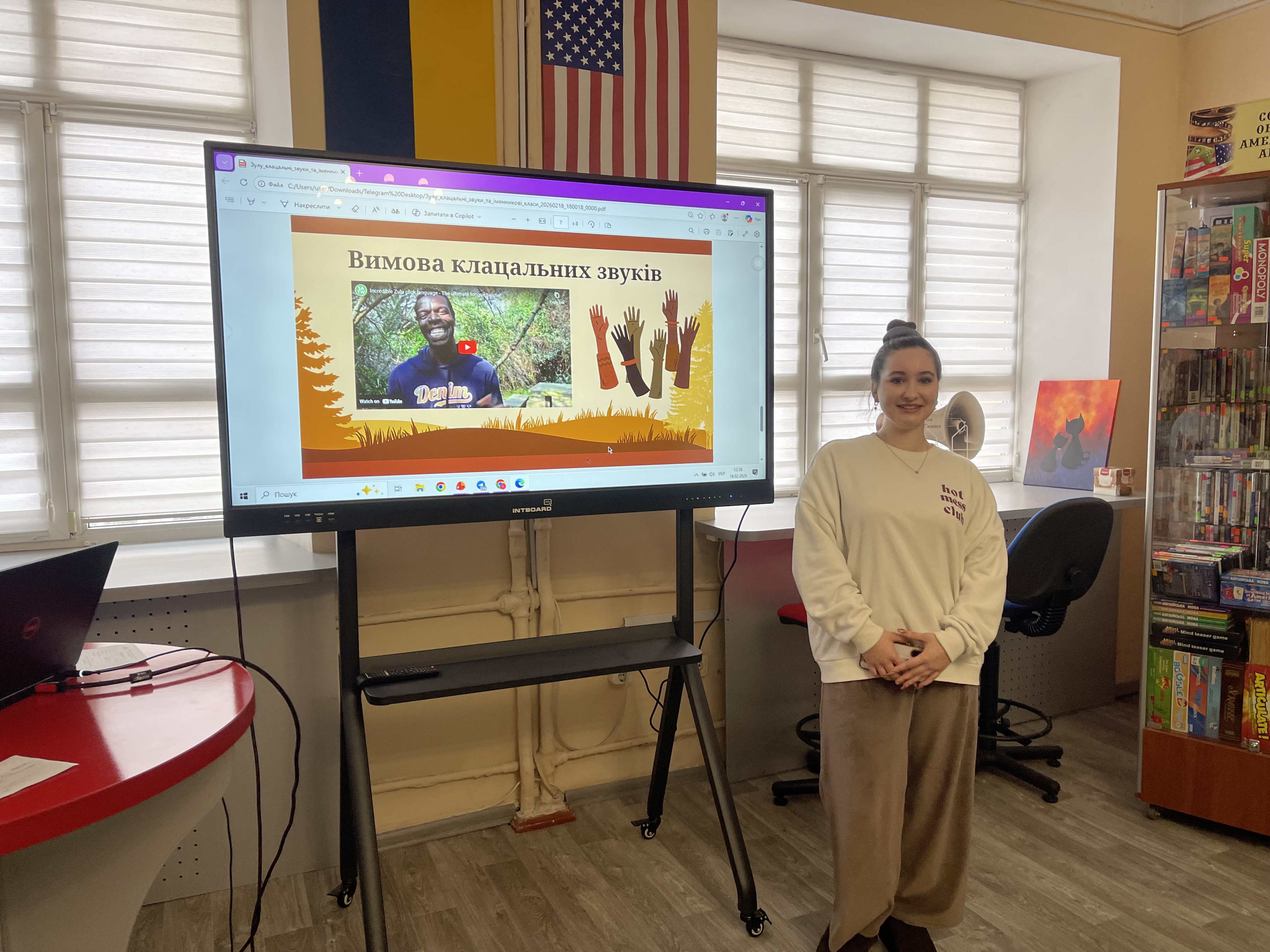 19 лютого 2026 року з нагоди Міжнародного дня рідної мови відбулося виїзне практичне заняття з освітнього компонента «Українська мова і культура мовлення» (доц. Валентина Тимкова) на тему «У гармонії мов і культур» для студентів спеціальності «Філологія». Захід було проведено у Вінницькій ОУНБ імені Валентина Отамановського у форматі години спілкування, що дало змогу поєднати академічну підготовку з живим культурним діалогом. Для філологів питання мови, культури мовлення та міжкультурної комунікації є важливою складовою професійної підготовки. Такий формат заняття сприяв розширенню світогляду здобувачів вищої освіти, розвитку мовної компетентності та усвідомленню ролі мови як чинника національної ідентичності.