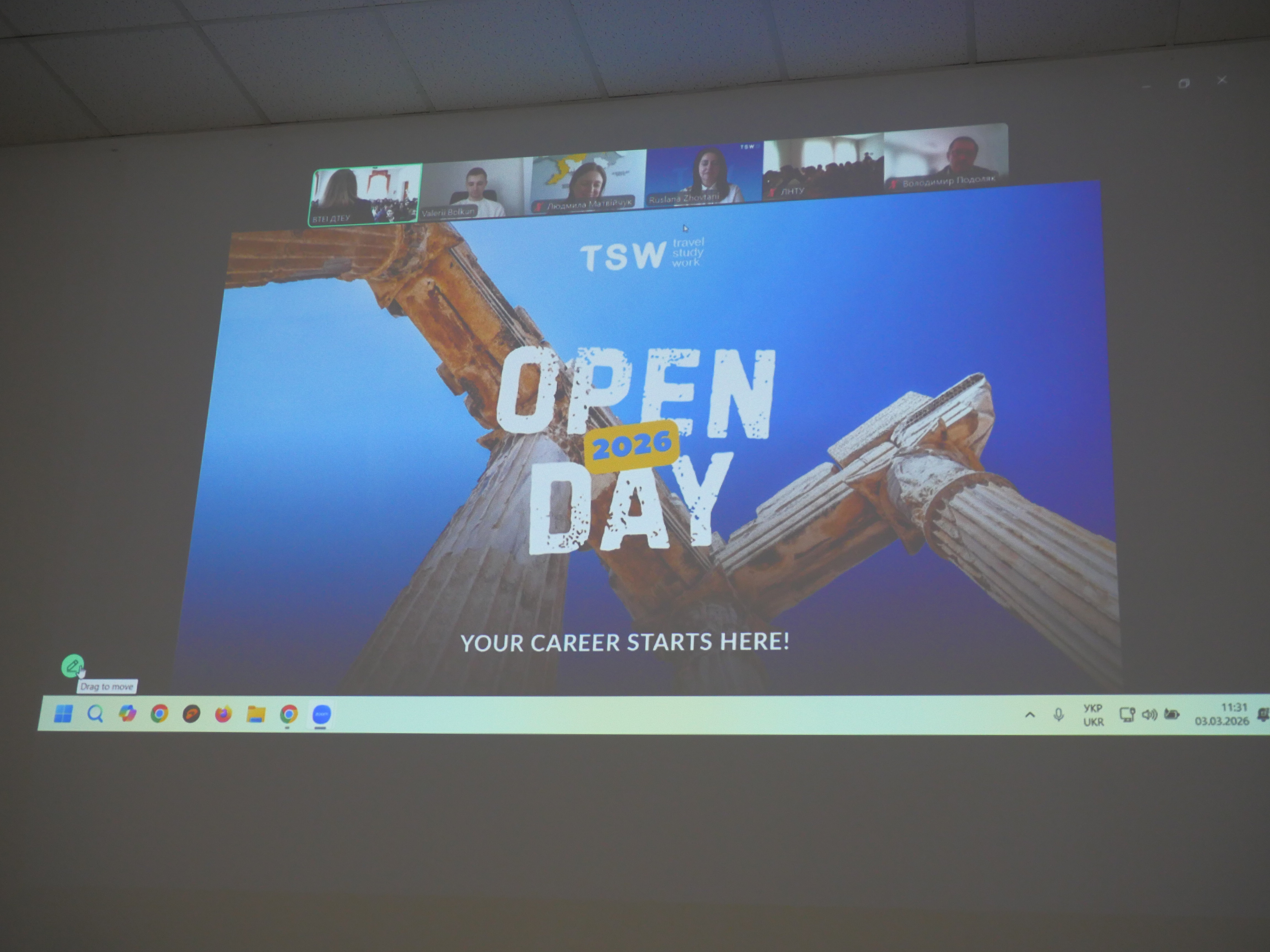 03 березня 2026 року у Вінницькому торговельно-економічному інституті ДТЕУ відбулась інформаційна зустріч-презентація міжнародних практик TSW OPEN DAY 2026, в онлайн та офлайн форматі, організована відділом наукової роботи та міжнародної співпраці та кафедрою туризму та готельно-ресторанної справи спільно з компанією Travel Study Work.