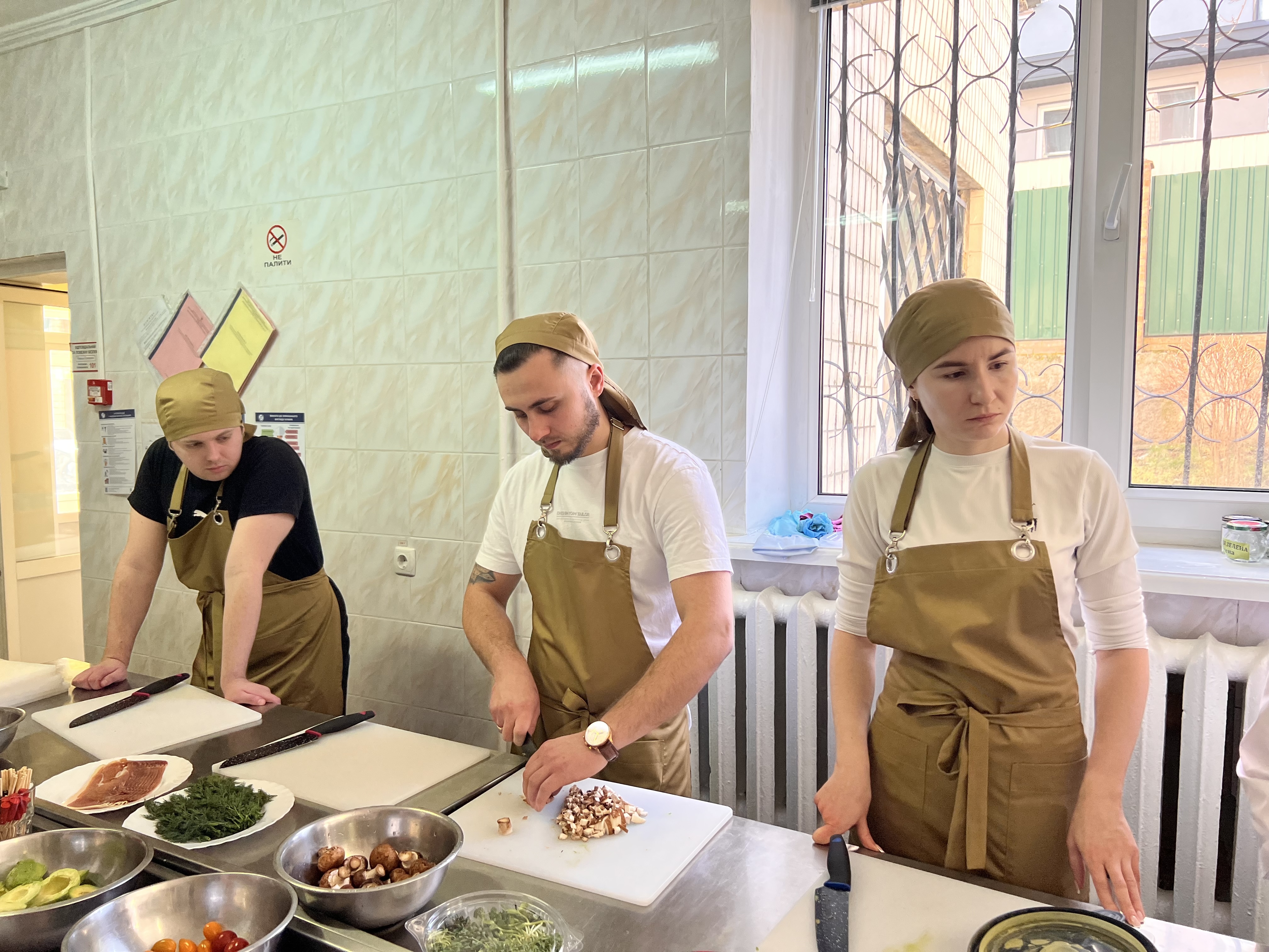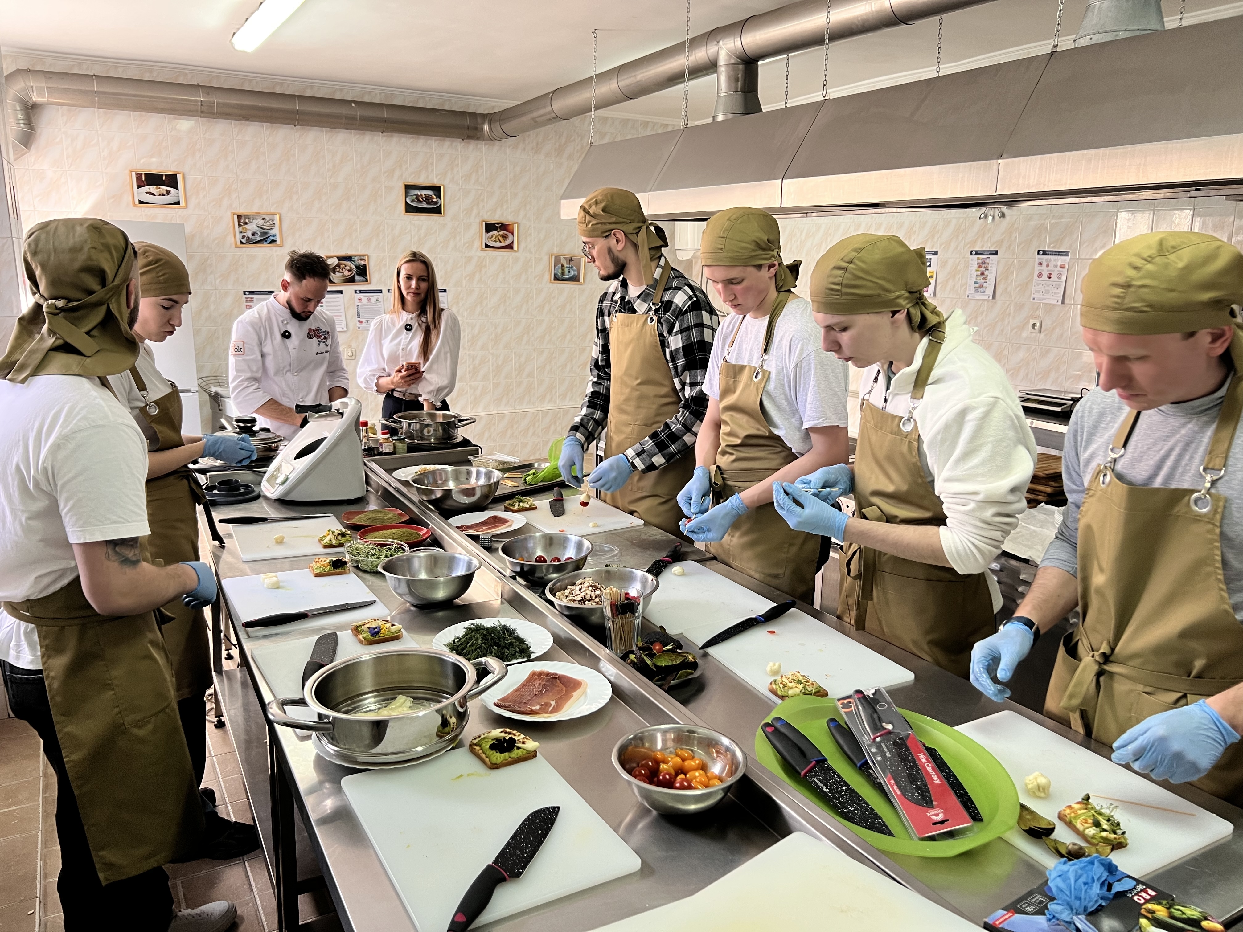 Учасники майстер-класу під керівництвом співзасновниці ТОВ «Смарт Кукінг Клаб» Марини Корчак та бренд-шефа, випускника ВТЕІ ДТЕУ Богдана Білокура приготували три страви: