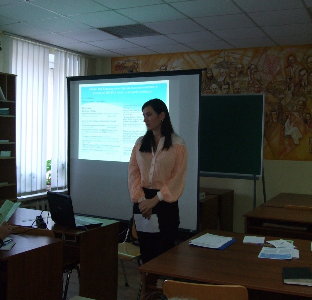 27 жовтня 2015 року відбувся міжвузівський семінар «Статистика бібліотечних процесів», організатором якого була бібліотека інституту. До участі у семінарі долучилися співробітники бібліотек ВНЗ м. Вінниці У програмі семінару розглядались питання обліку бібліотечних показників і процесів, який базується на автоматизованих бібліотечно-інформаційних системах. Учасники обговорили проблемні питання статистичної звітності. Зав. бібліотеки Т.М. Яворська поділилась досвідом про автоматизований облік бібліотечних процесів у бібліотеці ВТЕІ КНТЕУ.