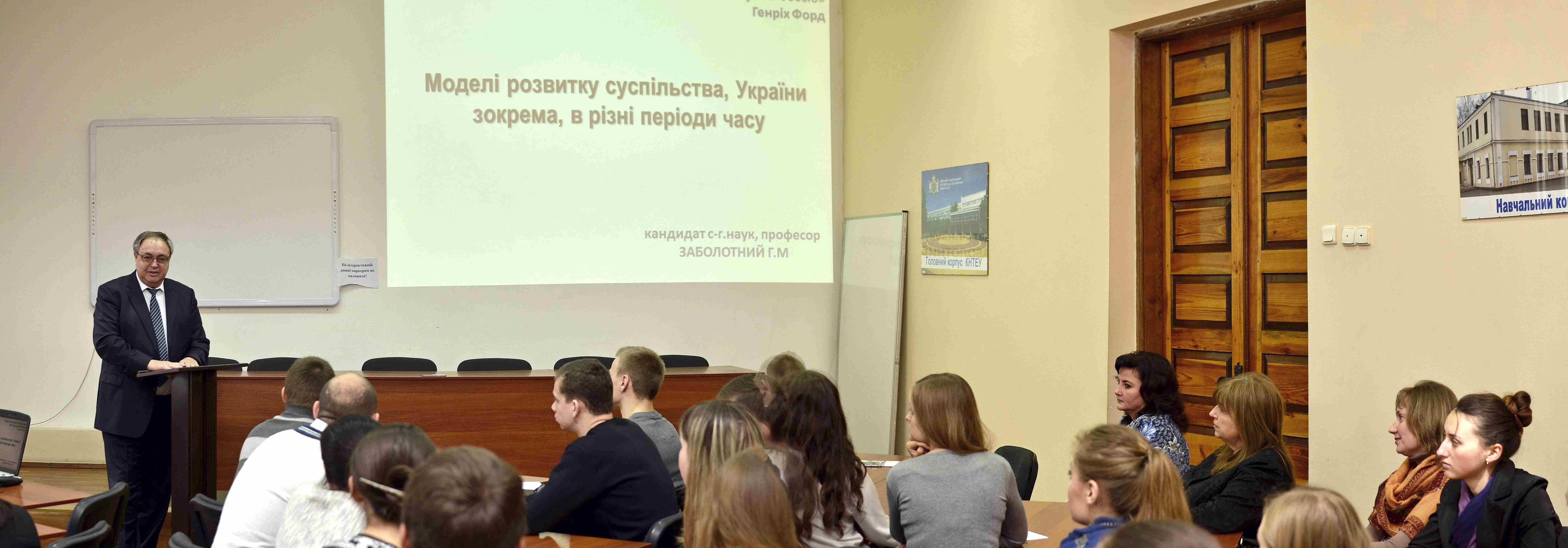 18 листопада 2015 року кафедрою менеджменту та адміністрування було запрошено професора, к.с-г.н., Народного депутата України Заболотного Г.М. для проведення майстер-класу зі здобувачами груп МО-11м, МО-41, МЗД-41, МТБ-41, ЕП-41, ГРС-31та науково-професорським складом на тему «Моделі розвитку суспільства, України зокрема, в різні періоди часу». Серед питань, які були представлені та жваво обговорювалися, можна виділити моделі економічного розвитку різних країн та суспільства, моделі реформування економіки, плюси та мінуси реформи децентралізації в Україні та аналіз системи агропромислового кластера