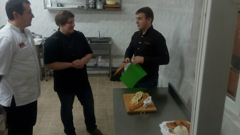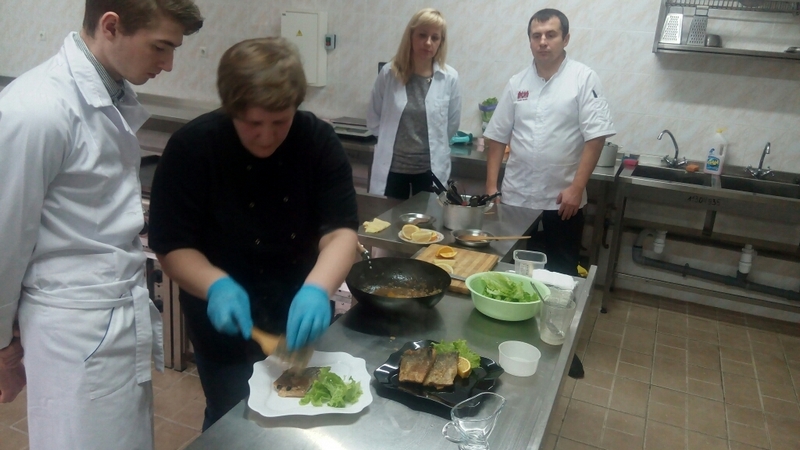 Шеф-кухар ресторану «Марсель» приготувала інноваційну страву «Короп в пивному клярі». Під час приготування вона показала всі тонкощі та високий професіоналізм по приготуванню цієї страви. Одночасно здобувачі групи ХТІ-21д приготували свої рибні страви, а зокрема: Коваль М., Гончарук І. «Тіляпія в кисло-солодкому соусі»; Котов Д., Маслюк Ю. «Тріска в клярі з апельсиновим соусом»; Онофрійчук І. «Сібас з розмарином та морською сіллю в борошняній оболонці»; Окунь О., Каракулова О., Шевчук Н., Мельник І. «Окунь на грибній подушці з соусом «Тар - Тар»; Іващенко В., Мантак З., Хіхлуха Р. «Дорада запечена з томатами зі смородиновим соусом». Після майстер-класу студенти презентували свої власноруч виготовлені страви шеф-кухарю ресторану «Марсель». Вона була приємно вражена високим рівнем і навичками готування таких страв. В ході презентації Наталія Вікторівна давала слушні рекомендації та настанови по приготуванню рибних страв. По закінченню майстер-класу відбулась довгоочікувана дегустація, де учасники заходу отримали нові смакові відтінки, враження від споживання рибних страв.