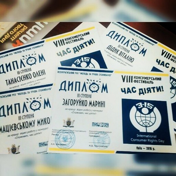 28 березня 2016 року у Київському національному торговельно-економічному університеті відбулось урочисте закриття VIIІ Консюмерського фестивалю «Час діяти!». Під час проведення заходу було нагороджено всіх учасників всеукраїнського руху «Молодь за права споживачів!».