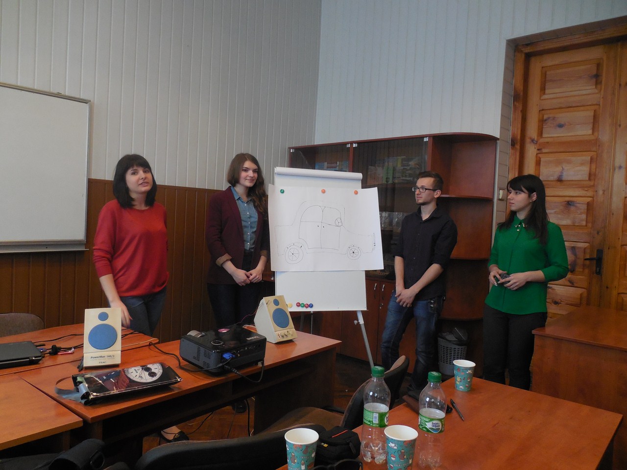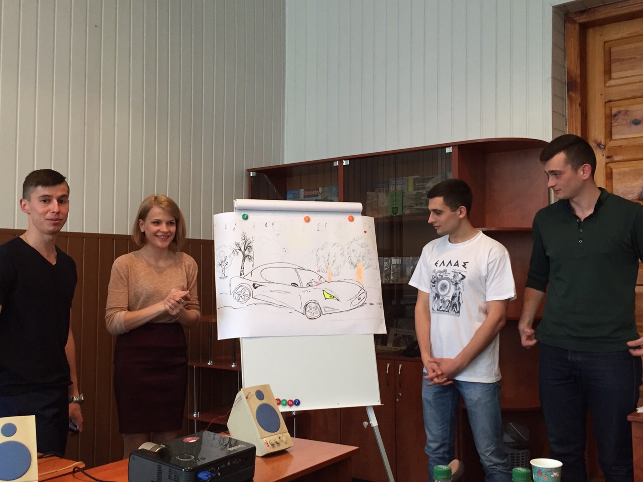 Вправа «Будуємо автомобіль» дала можливість членам кожної групи виконати на своєму аркуші паперу стилізований малюнок автомобіля. Тренер проінструктував учасників, що кожний член групи має додати до малюнка одну деталь, яка найбільше ілюструє його сильну рису, котру цей учасник може дати групі, або символізує характер його взаємин із групою. Виконання цієї вправи допомогло учасникам краще усвідомити власні сильні сторони та потенційний внесок один одного до спільної справи. Крім того, були переглянуті цікаві відеоматеріали, які звернули увагу на важливе та допомогли сформувати студентам нові переконання, які знадобляться їм в подальшому житті, а саме: «Багатьох помилок можна уникнути, якщо просто задати питання та вислухати відповідь». «Якщо люди не хочуть, щоб їм допомагали, залиште їх в спокої». «Головний принцип допомоги – повага!»