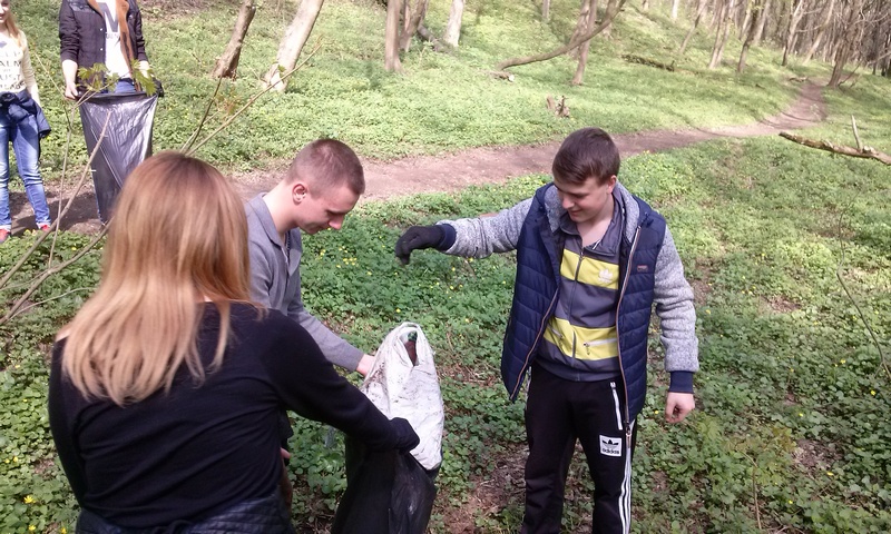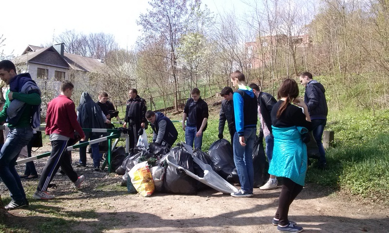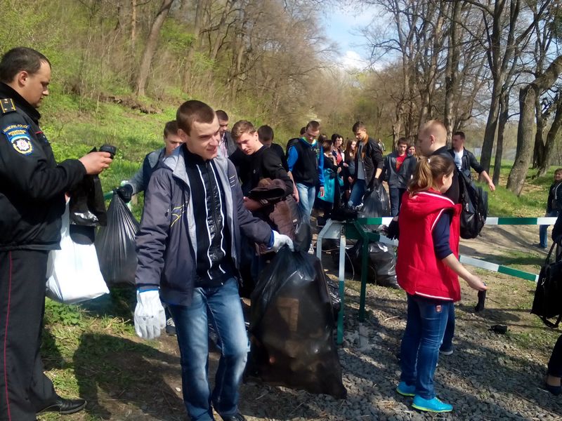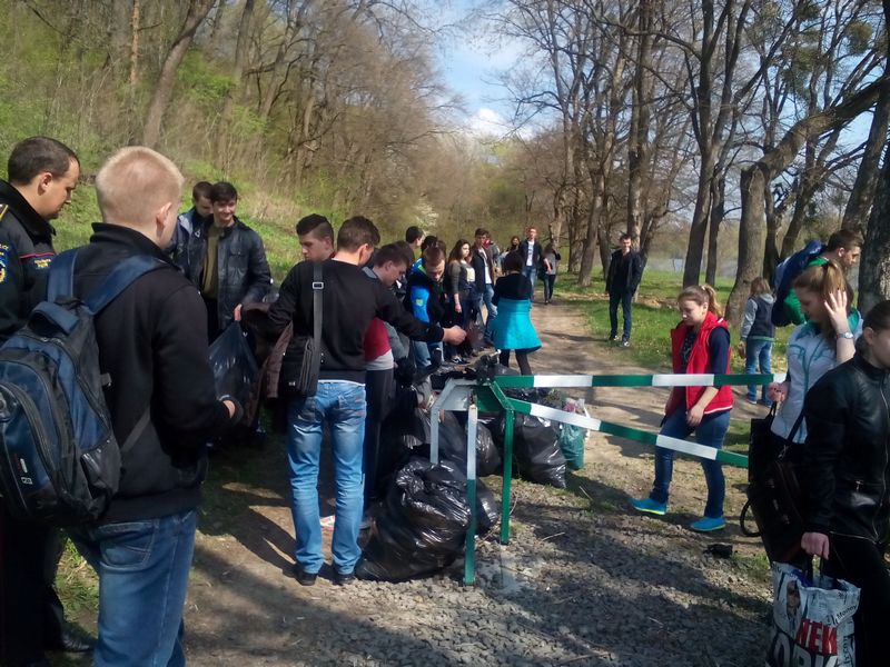 От і в цьому році 12 квітня 100 студентів з трьох факультетів на чолі з представником муніципальної поліції прибирали лісовий масив над р. Південний Буг.