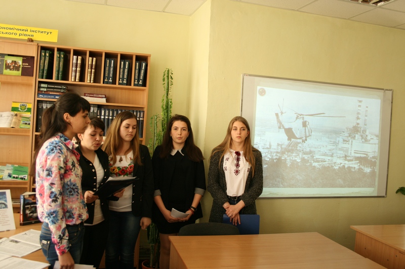 Студенти груп ДФ-11д, ОАП-11д та ДФК-11д Саєнко Ярослав, Колеснік Наталія, Оленіч Аліна, Покиньборода Альона, Пранничук Олена, Божок Марина, Фурман Аліна та Фурман Дар’я у прозі та віршованих рядках відтворили історію подій того страшного дня. А короткі документальні відеофрагменти ліквідації наслідків аварії на ЧАЕС, інтерв’ю з очевидцями тих подій та фотографії доповнили картинку героїчного подвигу пожежників, льотчиків, шахтарів, зв’язківців, медиків, будівельників, які вступили в бій зі смертельною радіацію за велінням совісті, щоб вберегти рідну землю від ще більшої катастрофи. Пам’ять загиблих під час ліквідації аварії на Чорнобильській атомній електростанції станції, а також тих, хто помер від її наслідків протягом 30 років, присутні вшанували хвилиною мовчання.