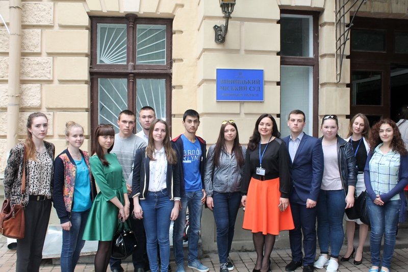 26 травня 2016 здобувачі вищої освіти факультету товарознавства, туризму та готельно-ресторанної справи груп КПР-11д, ФПР-11д (спеціалізація «Комерційне право», «Фінансове право) відвідали День відкритих дверей у Вінницькому міському суді Вінницької області. Біля головного входу в будівлю суду зустріли студентів заступник керівника апарату Федорова Р.В. та прес-секретар Сільницька К.В., які розповіли здобувачам історію становлення суду, провели інструктаж з правил поведінки у суді, а також ознайомили із структурними підрозділами суду.