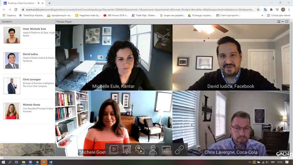 17 березня 2021 року слухачі Бізнес-школи ВТЕІ КНТЕУ - здобувачі вищої освіти брали участь у вебінарі на тему «Building a Data Foundation for an Insights Driven World», який організовано компанією Kantar.