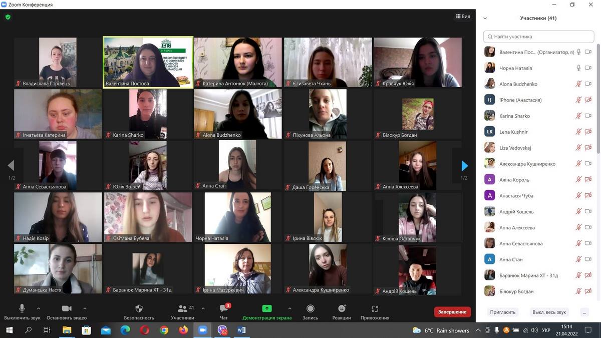 21 квітня 2022 року у рамках проведення ХІ Всеукраїнської студентської науково-практичної конференції «Актуальні проблеми ефективного соціально-економічного розвитку України: пошук молодих» відбулося засідання секції №10 «Тенденції розвитку індустрії гостинності та харчової промисловості: регіональний та національний виміри».