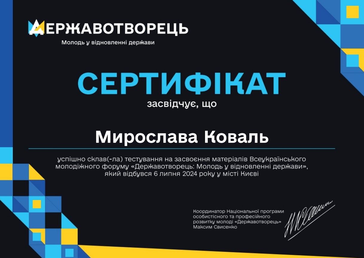 Здобувачі вищої освіти ОП «Публічне управління та адміністрування» взяли участь у Всеукраїнському молодіжному форумі «Державотворець: молодь у відновленні держави»