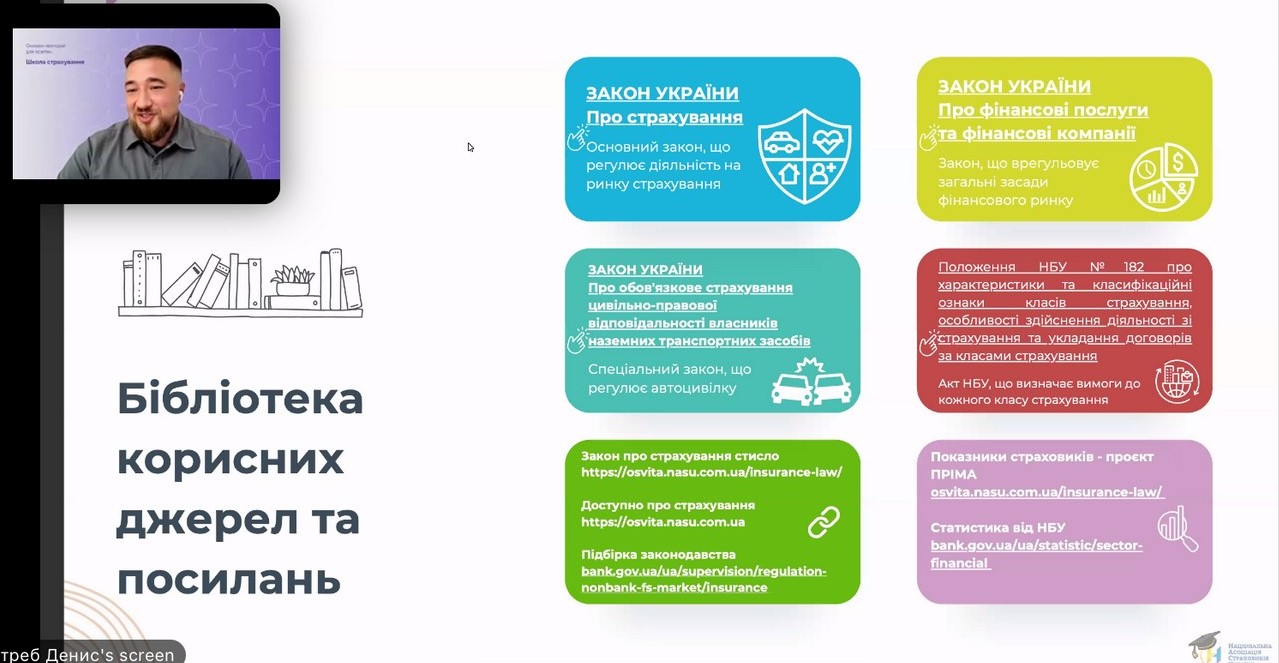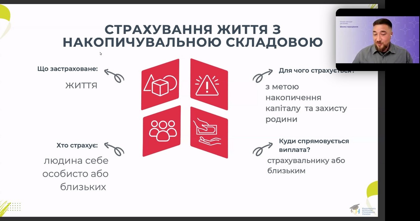 Школа страхування для освітян розроблена фахівцями Національного банку України із залученням провідних експертів страхового ринку України. Лекцію проводив Денис Ястреб - генеральний директор Національної асоціації страховиків України.