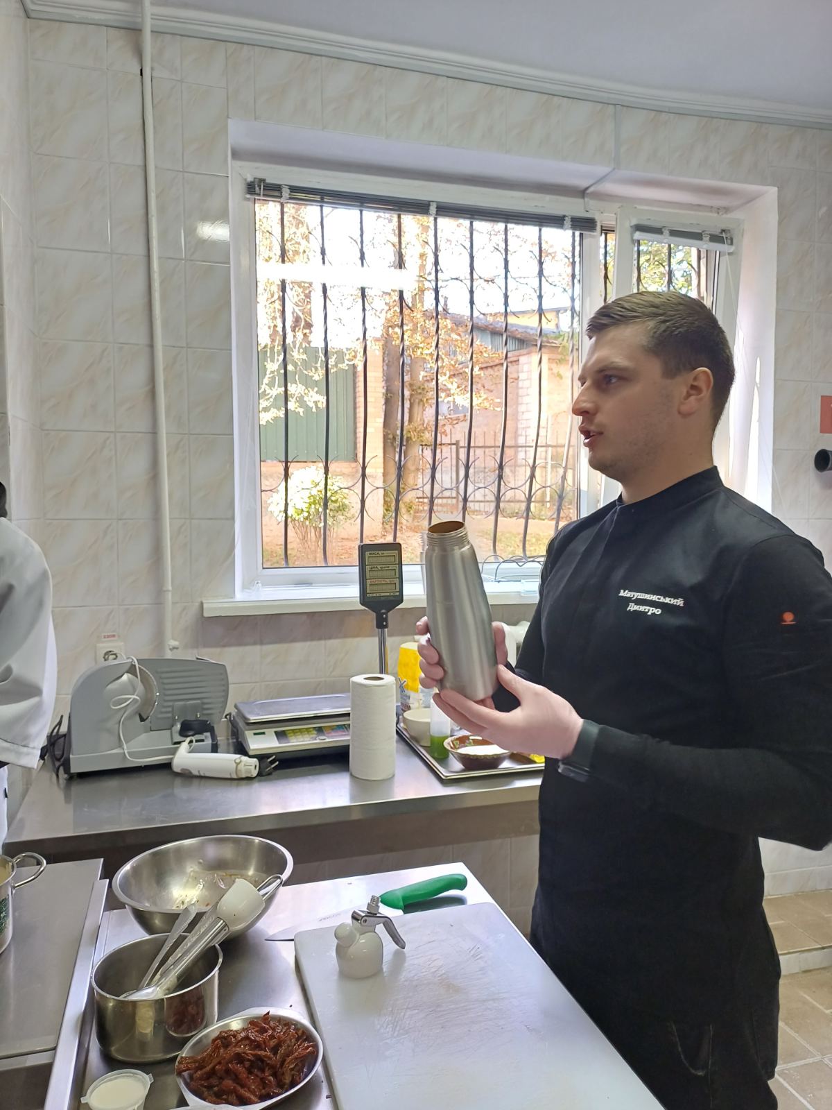 Станом на тепер, як ніколи раніше. важливо зберегти в українських стравах автентичний характер та зміст, створивши для них нове сучасне обрамлення. Саме так вважає бренд-шеф ресторану «А-12» та «INKI BAR by INKI People» (м. Київ) Дмитро Матушинський, який 22 жовтня 2024 р. у лабораторії кафедри туризму та готельно-ресторанної справи провів для здобувачів вищої освіти майстер-клас на тему «Використання можливостей SousVide у технологіях сучасної ресторанної продукції».