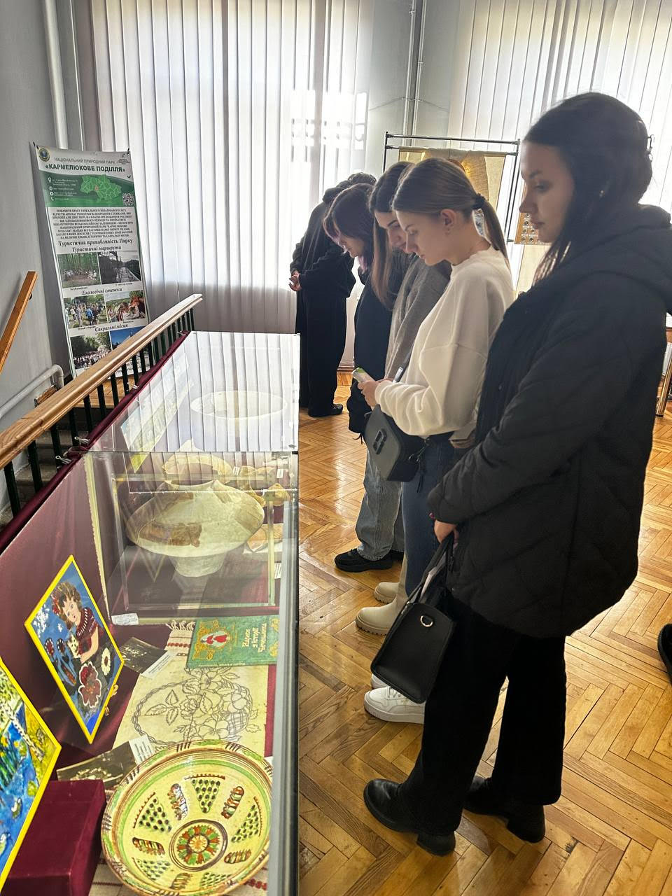 6 листопада 2024 року здобувачі вищої освіти за спеціальністю 242 «Туризм» ОС «бакалавр», у рамках вивчення освітнього компоненту «Туристичне краєзнавство» відвідали виставку «Національний природний парк «Кармелюкове Поділля» на базі Вінницького обласного краєзнавчого музею.