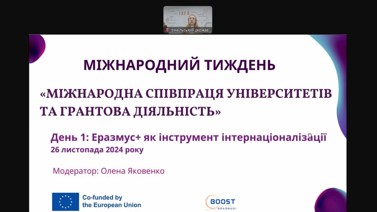 26 листопада 2024 року науково-педагогічні працівники кафедри обліку та оподаткування долучилися до онлайн-заходів МІЖНАРОДНОГО ТИЖНЯ «МІЖНАРОДНА СПІВПРАЦЯ УНІВЕРСИТЕТІВ ТА ГРАНТОВА ДІЯЛЬНІСТЬ» в межах імплементації Erasmus+проєкту BOOST (Bringing Opportunities and Organizational Success To Small Local Universities in Ukraine).