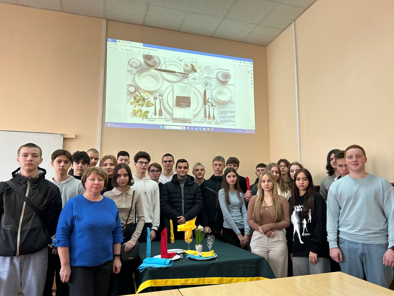 11 березня 2024 року у Вінницькому торговельно-економічному інституті ДТЕУ, в межах дії Меморандуму про співпрацю між закладами освіти, відбувся майстер-клас «Святкове тематичне сервірування столу та техніки складання столових серветок» для учнів 10-В класу комунального закладу «Вінницький ліцей №4», які вивчають курс за вибором «Соціальне шкільне підприємство».