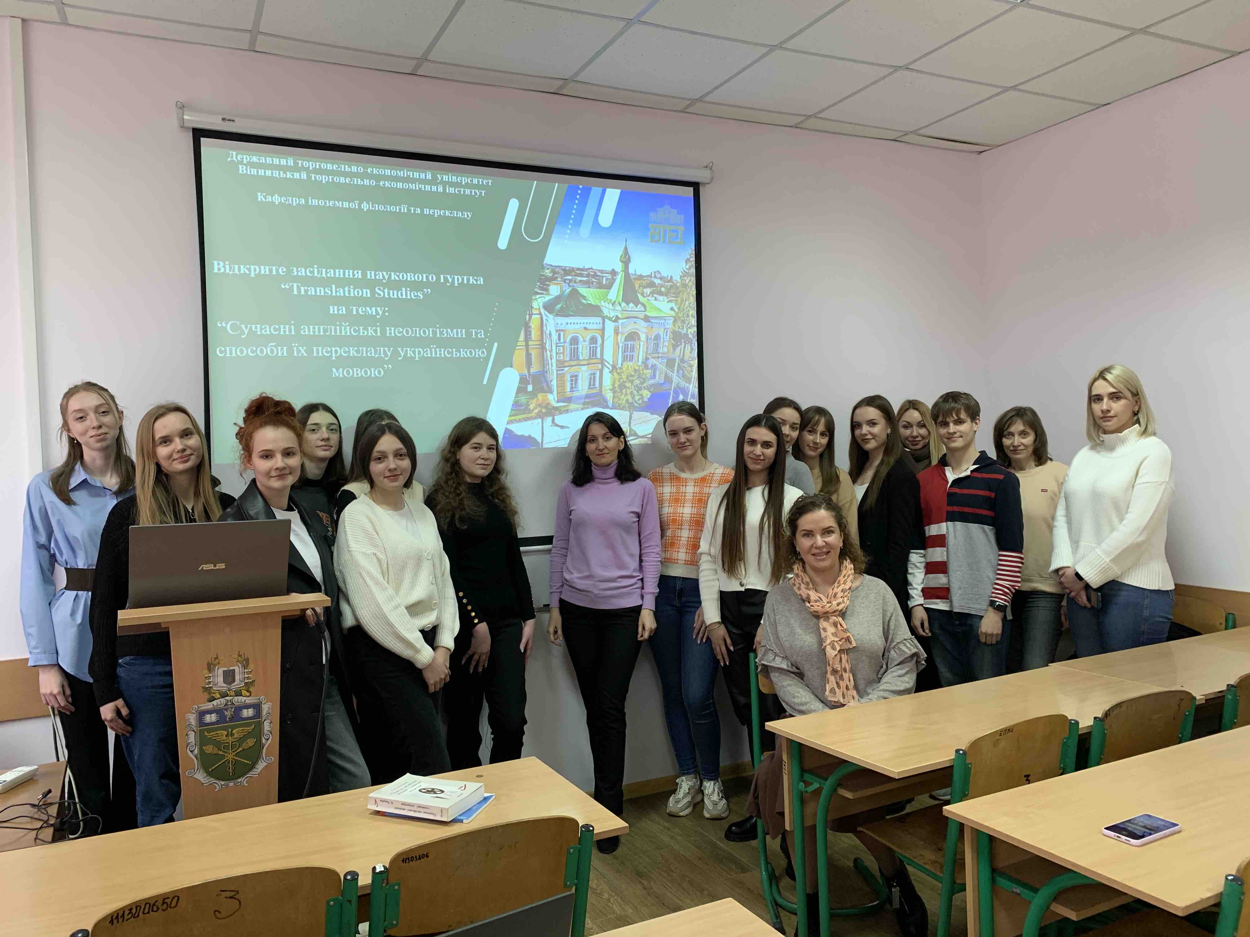 6 березня 2024 року кафедрою іноземної філології та перекладу Вінницького торговельно-економічного інституту ДТЕУ було проведено відкрите засідання наукового гуртка “Translation Studies” під керівництвом доц. Западинської Ірини на тему “Сучасні англійські неологізми та способи їх перекладу українською мовою ”.