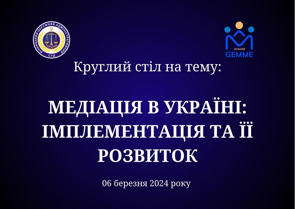 6 березня 2024 року директор інституту Наталія Замкова, завідувач кафедри права Тетяна Сухоребра та доцент кафедри права Ірина Бахновська долучились до роботи круглого столу на тему: «Медіація в Україні: імплементація та її розвиток», який відбувся у Вінницькому окружному адміністративному суді.