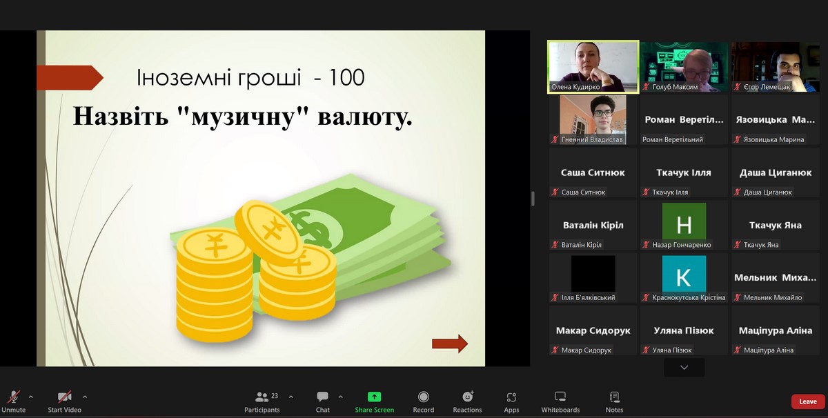 5 лютого 2024 року на платформі Zoom в межах дії Меморандуму про співпрацю між закладами освіти, відбулась квест-гра «Національна валюта - гривня» для учнів 10-В класу комунального закладу «Вінницький ліцей №4», які вивчають курс за вибором «Соціальне шкільне підприємництво».