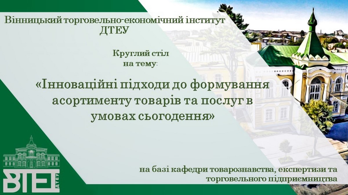 26 жовтня 2023 року кафедрою товарознавства, експертизи та торговельного підприємництва у змішаному форматі проведено студентський круглий стіл на тему «Інноваційні підходи до формування асортименту товарів та послуг в умовах сьогодення».