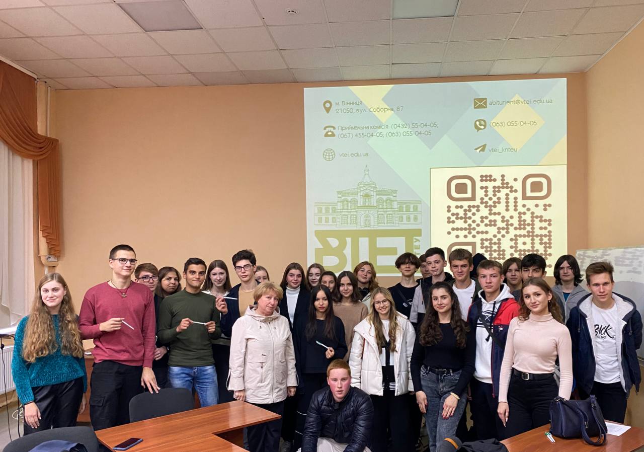 Студенти та викладачі ВТЕІ ДТЕУ провели інтелектуально-розважальну гру «Обери свій бренд» для школярів 11-В класу КЗ «Вінницький ліцей №4». Метою гри є визначення інтересів та навичок учнів, які можуть вплинути на подальший вибір професії. Зокрема, школярі познайомилися детальніше зі спеціальностями і освітніми програми інституту та дізналися про можливості його студентського життя. Подібні заходи сприяють збалансованому та обгрунтованому вибору майбутньої спеціальності, допомагають уникнути невдач та підвищують шанси на успішну кар'єру.