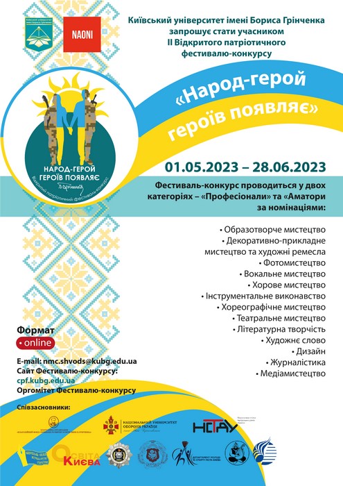Це й надихнуло засновників II Відритого фестивалю-конкурсу «Народ герой – героїв появляє» - Київський інститут Бориса Грінченка та співзасновників – Благодійний фонд сприяння освіти імені Бориса Грінченка та академічний оркестр народних інструментів України на ідею організувати мультимедійний мистецький проект, надавши можливість поділитися творчим доробком і аматорам і професіоналам.