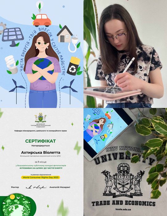 Здобувачі ОС «бакалавр» спеціальності 075 «Маркетинг» взяли участь у Всеукраїнському публічному конкурсі фотопостерів #Споживач на шляху до чистої енергії у рамках відзначення World Consumer Rights Day 2023 та здобули перемогу.