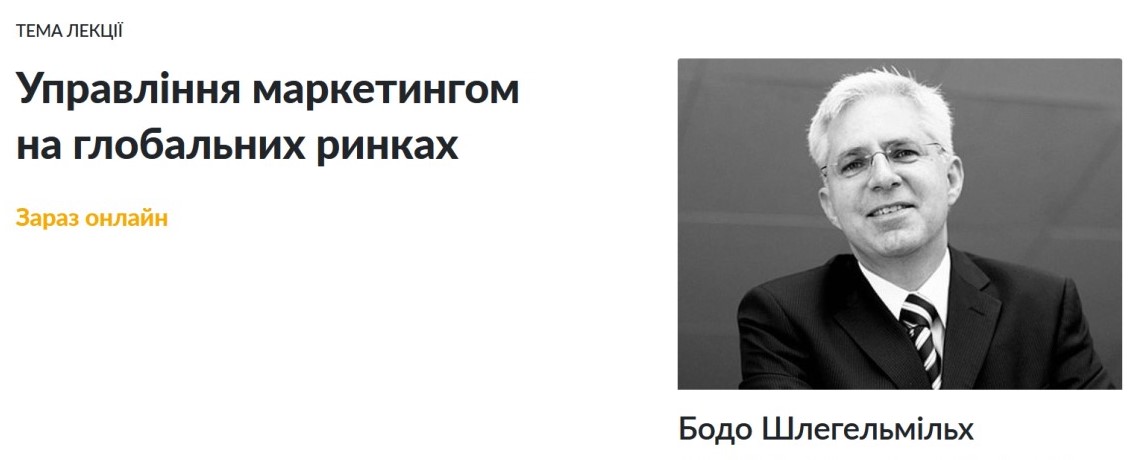 Онлайн-лекція була проведена професором Бодо Шлегельмільхом, який очолює Інститут управління міжнародним маркетингом Віденського Університету (WU Vienna) та є головою ради директорів міжнародних асоціацій бізнес-освіти AMBA та BGA.