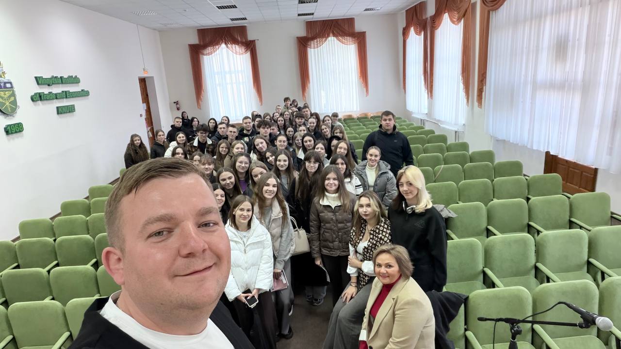 15 жовтня 2025 року у стінах Вінницького торговельно-економічного інституту ДТЕУ відбулося чергове засідання Бізнес-школи. Гостем і спікером зустрічі став директор ПП «Рекламакс» Сергій Дідук - практик із багаторічним досвідом у сфері реклами, маркетингових комунікацій та брендингу.