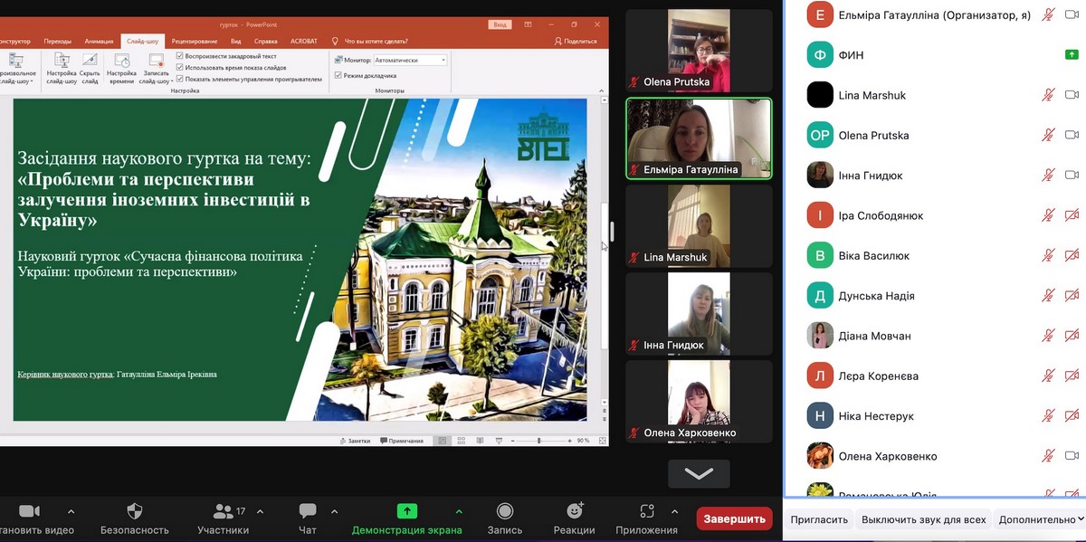 1 березня 2023 року відбулося засідання наукового куртка на тему «Проблеми та перспективи залучення іноземних інвестицій в Україну».