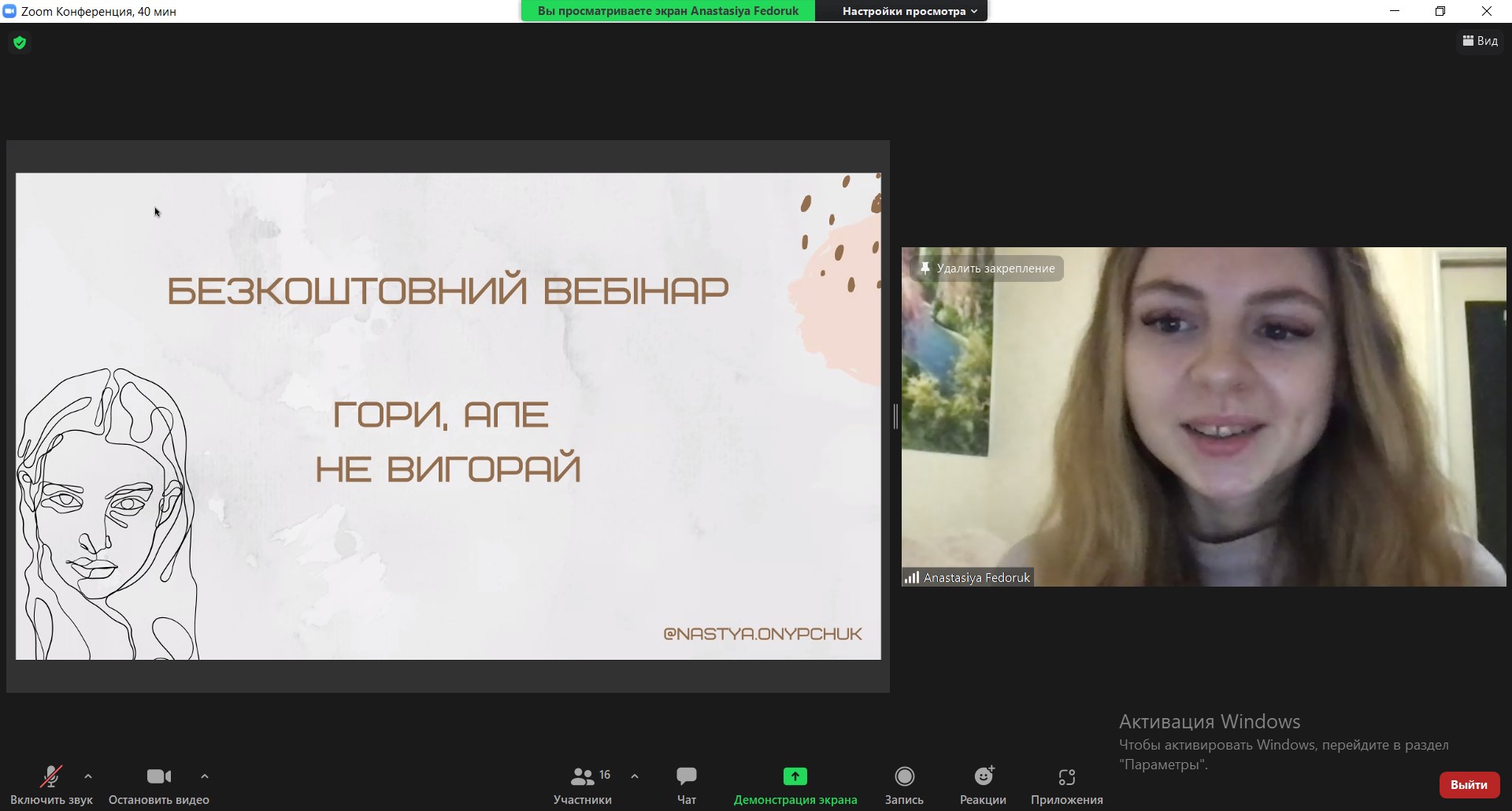 Бажаємо всім стабільного емоційного стану, менше переживань і більше щасливих моментів, а також щиро дякуємо Анастасії за цікавий вебінар та корисні поради!