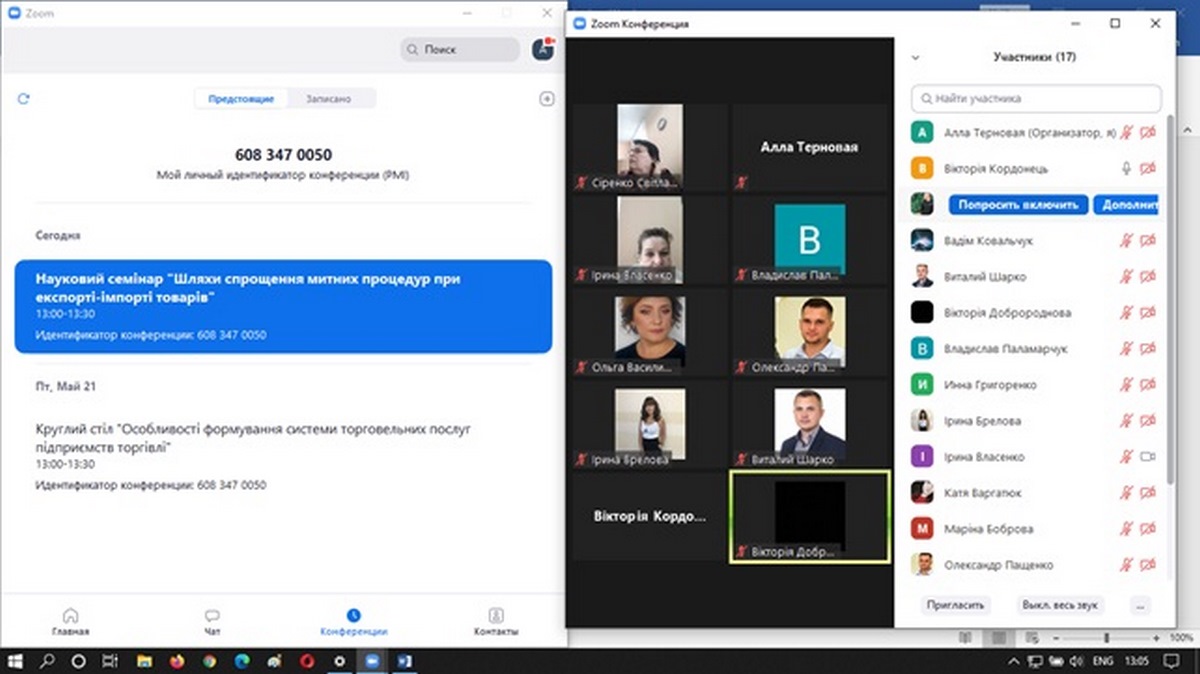 19 травня 2021 року кафедрою товарознавства, експертизи та торговельного підприємництва дистанційно онлайн на платформі Zoom було проведено науковий семінар «Шляхи спрощення митних процедур при експорті-імпорті товарів».