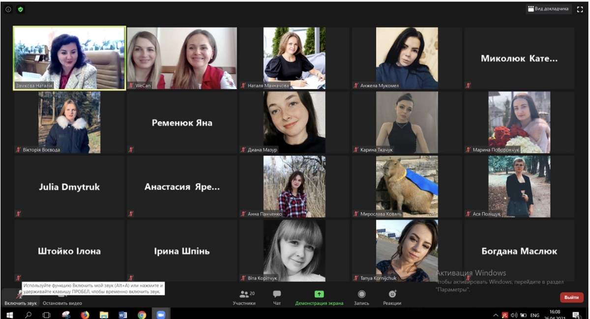 26 квітня 2021 року відбулась презентація напрацьованих проєктів учасниць міжнародного проєкту «WeCan». З успішним завершенням циклу тренінгів учасниць привітала доктор філософських наук, професор, директор інституту Наталія Замкова та побажала втілення найсміливіших ідей в найближчому майбутньому!