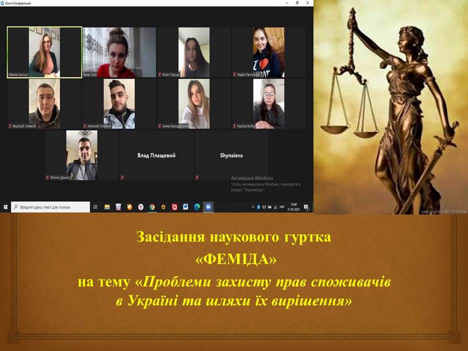 31 березня 2021 року відбулося онлайн засідання наукового гуртка «Феміда» (керівник к.ю.н., доцент кафедри права Білоус І.М.) на тему: «Проблеми захисту прав споживачів в Україні та шляхи їх вирішення».