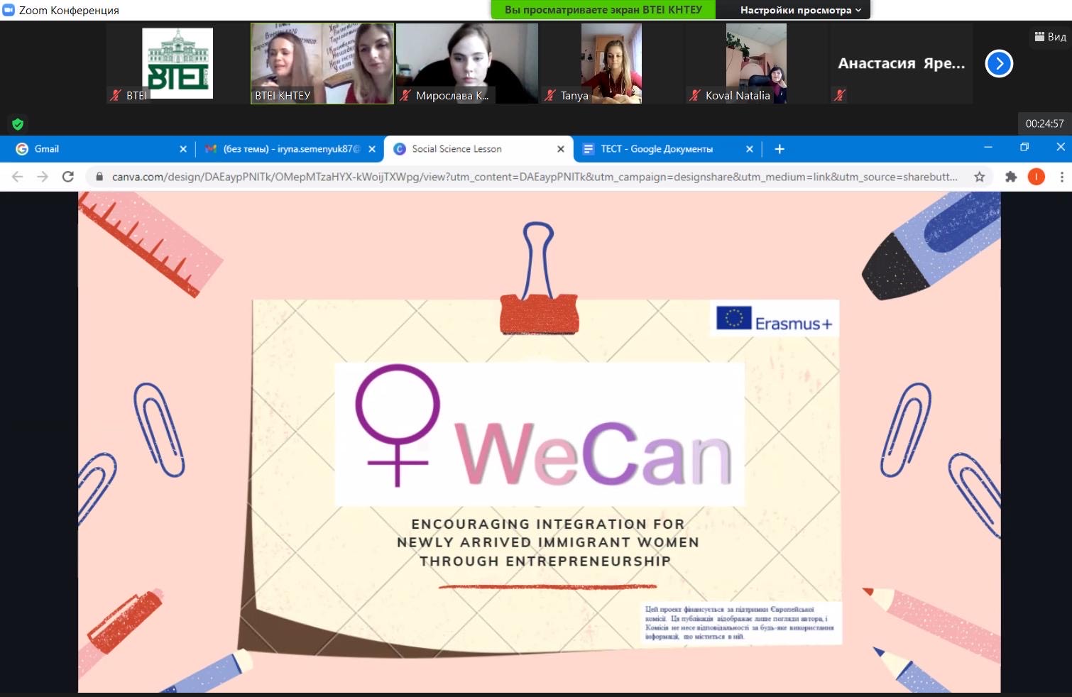 5 квітня 2021 року у ВТЕІ КНТЕУ відбувся перший тренінг «Розвиток підприємницьких soft skills» з циклу тренінгів проєкту «ENCOURAGING INTEGRATION FOR NEWLY ARRIVED IMMIGRANT WOMEN THROUGH ENTREPRENEURSHIP» (WECAN) (ERASMUS +) PROJECT NUMBER 2019-1-SE01-KA204-060421.