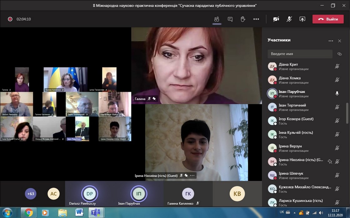 12 листопада 2020 року викладачі інституту та студенти ОП «Публічне управління та адміністрування» взяли участь у IІ Міжнародній науково-практичній конференції «Сучасна парадигма публічного управління», організованій Львівським національним університетом імені Івана Франка спільно з Національним університетом «Чернігівська політехніка» та Львівським регіональним інститутом державного управління НАДУ при Президентові України, яка відбулася у дистанційному форматі.