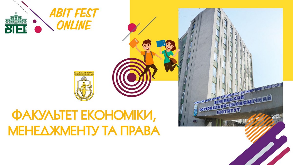 28 травня 2020 року у Вінницькому торговельно-економічному інституті КНТЕУ відбувся Abit Fest на факультеті економіки, менеджменту та права ОНЛАЙН. Під час проведення заходу учасників ознайомлено з інформацією про факультет, освітні програми, перспективи навчання та можливості для працевлаштування студентів.